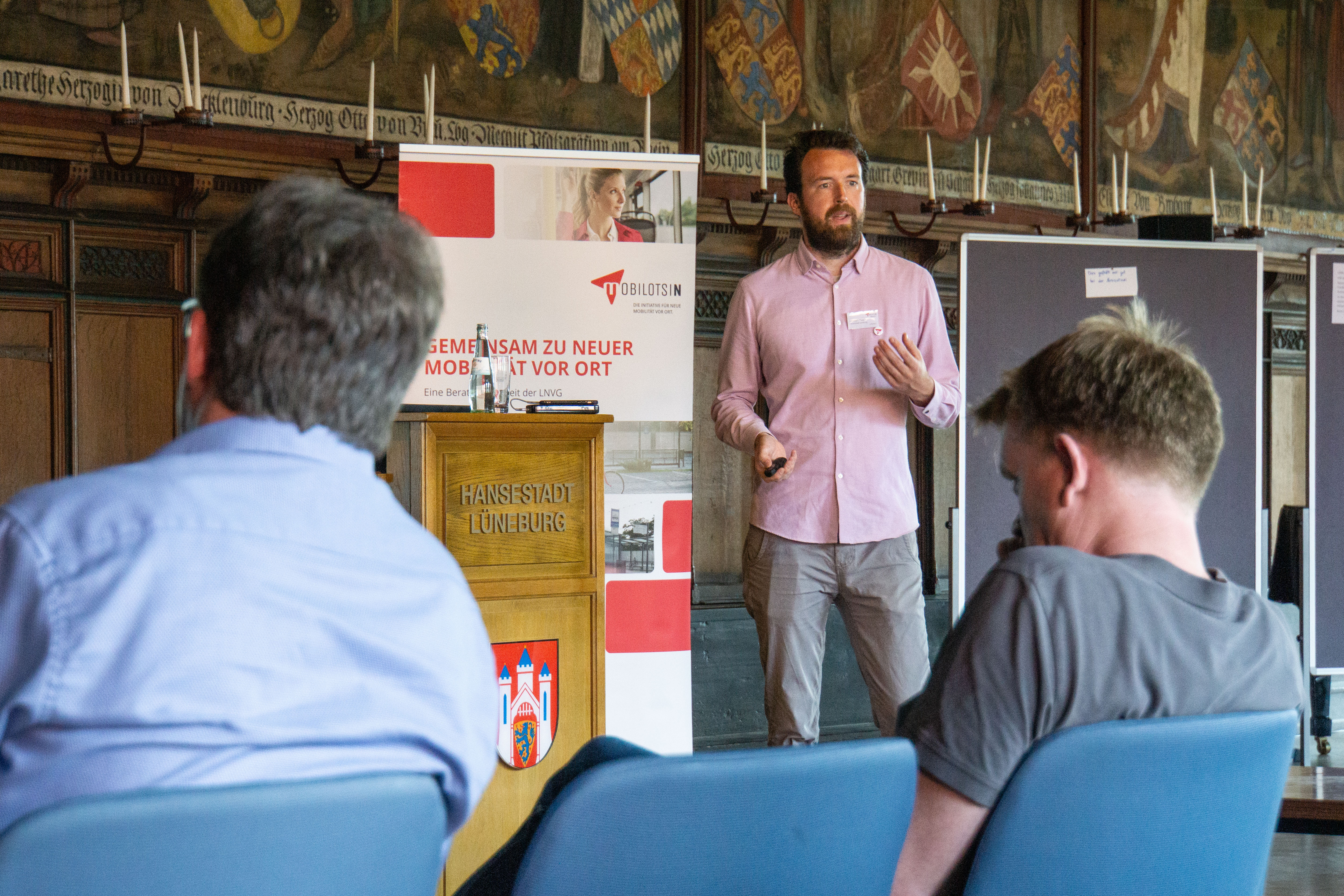 Bastian Hagmaier, Leiter des Bereichs Mobilität der Hansestadt Lüneburg, begrüßte die Teilnehmerinnen und Teilnehmer aus ganz Niedersachsen im Rathaus. „Wir sind auf die Einblicke in andere Kommunen gespannt – und auf den kritischen Blick von außen auf unsere Maßnahmen.“ Hagmaier nennt etwa den Fahrradring und den gerade begonnenen Prozess zum Schaffen eines Nachhaltigen Urbanen Mobilitätsplans für Lüneburg.